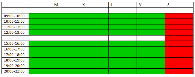 Fin de semana SEMI-INTENSIVO ( 4h diarias; 2 por la mañana y 2 por la tarde)Total de 12horas. De viernes a domingo